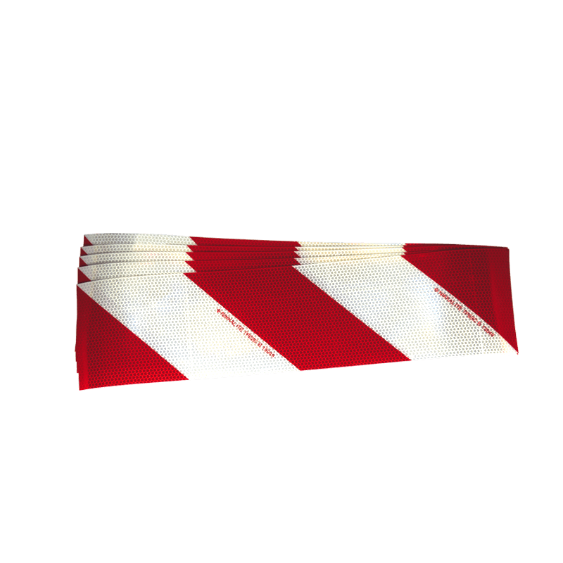 Kit de 4 bandes (2 droite + 2 gauche) adhésives de film rétro-réfléchissant Nikkalite™ classe B rouge/blanc microprismatique.
